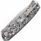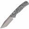 Le manche est composé de plaquettes en Manche Micarta bicolore noir et blanc, offrant une texture organique qui assure une prise en main exceptionnelle, même en conditions humides. D'une longueur totale de 18,11 cm (10,49 cm fermé), ce modèle utilise un mécanisme Axis Lock, permettant un verrouillage extrêmement sûr et une manipulation ambidextre fluide. L'ouverture est rapide grâce au Thumb Stud (ergot de pouce).