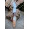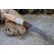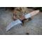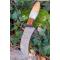 Longueur du manche 12.5cm - Longueur de la lame 10cm - Lame en Acier damas 256 couches - Lame de type serpette - Construction d'une seule pièce - Full tang - Mitres en bois - Plaquettes du manche en bois & résine façon coquillage - Fabrication Artisanale - Les dessins de la lame sont uniques comme une empreinte