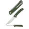 Matériau du Manche : Plaquettes en G10 de couleur verte et noire. Le G10 offre une prise en main exceptionnelle, même par temps humide.