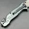 Le manche est fabriqué en Aluminum gris haute résistance, offrant une légèreté optimale et une durabilité accrue. Fidèle à sa vocation de sauvetage, il intègre un coupe-ceinture (cord cutter) protégé et un brise-vitre (glass breaker) en carbure à son extrémité. La sécurité est assurée par un mécanisme Linerlock fiable. Il est équipé d'un clip de poche en acier pour un port sécurisé.