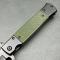 Le manche est construit sur une base de Black Stainless Steel (acier inoxydable noir) agrémenté de plaquettes de type Green G10 Inlay (inserts en G10 vert). Cette combinaison assure une structure rigide et durable tout en offrant un grip texturé aux endroits stratégiques. La sécurité est assurée par un mécanisme Linerlock fiable. Il est équipé d'un clip de poche en acier et d'une soie étendue (extended tang) pour une manipulation facilitée.