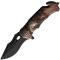Système à ouverture assistée. Longueur fermé 12.70cm. Longueur de lame 9.53cm. Lame en acier inox finition black. Plaquettes du manche en ABS avec aigle. Ouverture d'une main avec le thumb hole et le flipper. Fonction coupe ceintures & brise vitres. Clip de poche.