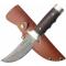 Couteau Elk Ridge Lame Upswept Damas Manche Bois Garde et Pommeau Acier Inoxydable Etui Cuir ERFIX116DM