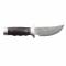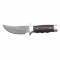 Lame de 11.43 cm en acier damas avec un profil upswept distinctif, offrant des motifs uniques et un bon tranchant.