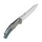 Couteau Maserin "Energy", lame satinée avec "flipper" et cran intérieur, manche titanium gris, vis et clip titanium bleu.