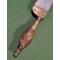 Le manche est fait d'une boule de corne blonde et de laiton décoré.