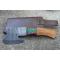 Couteau d'Esquimau Inuit Ulu/Hachoir Lame Acier Damas 256 Couches Manche Bois Etui Cuir Fab Artisan