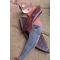 Couteau d'Esquimau Inuit Ulu Lame Acier Damas 256 Couches Manche Bois Etui Cuir Fabric Artisanale