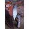 Couteau Ulu Inuit Skinner 256 Layers Damascus Blade Leather Sheath à lame fixe - Longueur de lame 15.5cm - Longueur du manche 12cm - Construction d'une seule pièce - Full Tang - Lame en acier damas 256 couches - Dos de la lame guilloché - Plaquettes du manche en bois - Mosaic pins - Entretoises en laiton - Trou dans le manche pour dragonne - Etui cuir - Fabrication artisanale