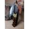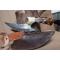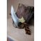 Couteau Ulu Inuit Skinner 256 Layers Damascus Blade Leather Sheath à lame fixe - Longueur de lame 15.5cm - Longueur du manche 12cm - Construction d'une seule pièce - Full Tang - Lame en acier damas 256 couches - Dos de la lame guilloché - Plaquettes du manche en bois façon marqueterie - Mosaic pins - Entretoises en laiton - Mitres en os - Trou dans le manche pour dragonne - Etui cuir - Fabrication artisanale