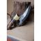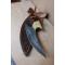 Couteau d'Esquimau Inuit Ulu Lame Acier Damas 256 Couches Manche Bois/Os Etui Cuir Fab Artisanale