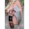 Couteau d'Esquimau Inuit Ulu Lame Acier Damas 256 Couches Manche Bois&Résine Etui Cuir F Artisanale
