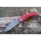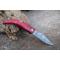 Couteau inspiré d'un couteau corse - Longueur fermé 10cm - Longueur ouvert 18cm - Dos de la lame guilloché sur 2 cm - Platines du manche en nickel - Plaquettes du manche en bois couleur rubius - Ressort du dos guilloché - Lame en damas 128 couches - Les dessins de la lame sont comme une empreinte, ils sont uniques - Fabrication Artisanale - Système de sécurité lockback - Ouverture à 2 mains