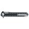 La lame de style Tanto américaine, montée sur roulement à billes en acier 440A, est équipée d'un Flipper permettant l'ouverture à une main et servant à protéger le doigt lorsque la lame est ouverte. La lame est maintenue en place grâce à un système de sécurité Linerlock. Un clip ceinture vous permet de le transporter facilement dans votre poche. Le trou à l'extrémité du manche permet de fixer un lacet ou un anneau.