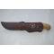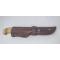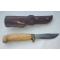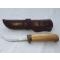 Couteau Finlandais Marttiini Lynx. longueur de lame 11 cm pour un total de 22 cm. manche en bouleau madré, ciré, viroles de bronze etui en cuir.