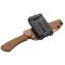 Un manche en G10 marron et vis noirs