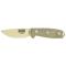 Le couteau fixe ESEE-3 Désert présente une lame en acier carbone robuste avec un tranchant mixte pour des découpes variées. Le manche en Micarta gris assure une prise en main sûre. Un étui en Zytel facilite le transport, tandis que la couleur désert de la lame offre discrétion et élégance. Longueur totale : 209 mm.