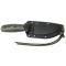 Le couteau fixe ESEE-3, avec sa lame en acier carbone et son profil Drop Point, offre robustesse et précision pour divers usages. Le manche en G10 vert/noir assure une prise en main sûre. Un étui Zytel noir facilite le transport, tandis qu'un trou pour dragonne permet un accès rapide. Longueur totale : 209 mm, lame : 88 mm.