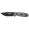 Le manche en Micarta, de couleur grise, procure une prise en main confortable et sécurisée, même dans des conditions humides. La finition du manche, associée à la couleur noire de la lame, confère à ce couteau un design sobre et élégant. Le pommeau modifié ajoute une fonctionnalité supplémentaire, augmentant la polyvalence de l'outil.