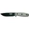 Le couteau fixe ESEE-4, doté d'une lame noire en acier carbone, assure durabilité et précision. Son profil Drop Point et son manche en Micarta gris garantissent confort et contrôle. L'étui en Zytel noir offre un port sécurisé. Longueur totale : 227 mm, lame : 116 mm. Conception robuste pour diverses utilisations.