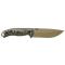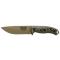 Le couteau fixe ESEE-5 se distingue par sa lame en acier carbone, offrant une résistance exceptionnelle et un tranchant lisse, idéal pour des coupes précises. Le profil de lame Drop Point assure une polyvalence remarquable, adaptée à diverses tâches, qu'elles soient en extérieur ou en situation tactique.