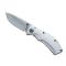 Couteau FOX EDGE « POP SMOKE », lame acier 8Cr13MoV sablé à cran intérieur et à bouton double, manche 9,5 cm acier inox finition « bead-blasted », avec clip.