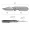 Le manche est une pièce d'ingénierie remarquable, entièrement conçu en Titane 6AL4V de couleur grise. Ce matériau de grade aéronautique offre une robustesse indestructible pour un poids plume, tout en conférant au couteau une esthétique minimaliste et haut de gamme. Le mécanisme Crossbar Lock (ou Axis Lock) garantit un verrouillage ultra-sécurisé et une manipulation ambidextre d'une fluidité parfaite. Le déploiement est instantané via le double Thumb Stud, soutenu par un pivot sur rondelles en bronze pour une fiabilité mécanique à toute épreuve.