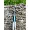 Sont réuni sur ce modèle une lame damas en acier carbone avec découpe EDM (électroérosion) inscrivant un symbole patrimonial français et un manche en corne de bélier muni d'une garde en manche colorée.