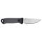 Le manche est doté d'un revêtement en Manche Caoutchouc texturé gris (Diamond Texture) pour un grip phénoménal, même avec les mains mouillées ou gantées. Sa structure lame fixe pleine soie (Full Tang) se termine par un pommeau brise-vitre en acier à la base du manche. Livré avec un système d'étui modulaire révolutionnaire, il peut être porté verticalement sur une ceinture, horizontalement sur une sangle ou fixé via un système MOLLE.