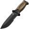 Le Strongarm, ce n'est pas juste une excellente lame et un excellent manche : c'est aussi un excellent étui (étui fourni). Ce dernier s'accroche quasiment n'importe où : sur votre sac à dos, à votre jambe ou à votre ceinture (entre-autres exemples), en position verticale ou en position horizontale suivant vos besoins du moment. Costaud mais pas trop lourd pour autant, le Strongarm Gerber affiche un poids honnête de 205 grammes. Épaisse et composée exclusivement d'acier inoxydable 420HC, la lame est extrêmement durable et facile à entretenir. Elle est compatible avec du bâtonnage. La pointe (Drop Point) peut percer, forer ou transpercer divers matériaux conventionnels. Son manche ne glisse pas dans la main : il est texturé et antidérapant. Dans le manche (coloris : coyote), il y a un trou : celui-ci autorise le passage d'une petite cordelette pour une meilleure sécurisation de votre couteau. En résumé, nous sommes en présence d'un excellent couteau de survie à tout faire, facile à transporter, à dégainer et à rengainer.