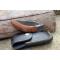 Couteau de Grand Père Corse Lame Acier Inox Manche Bois Fabric Artisanale Etui CUir