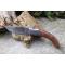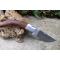 Couteau de grand père corse pliant - Longueur fermé 11.5cm - Longueur ouvert 20.5cm - Lame en acier inox - Platines en nickel - Plaquettes du manche en bois - Cran forcé - Ressort guilloché - Dos de la lame guilloché - Ouverture à 2 mains - Fabrication Artisanale - Etui cuir