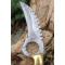 Couteau Tactical Urban Karambit à lame fixe - Longueur totale 22.5cm - Longueur de lame 9.5cm - Epaisseur de lame 5mm - Lame de type griffe - Lame en acier damas 256 couches - Construction d'une seule pièce - Full Tang - Plaquettes du manche en bois de rose - Mitres en laiton - Anneau en bout de manche - Fabrication Artisanale - Etui cuir