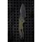 Le HIGHTRON Mini Ventura est équipé d'une lame de 7,32 cm en acier D2 Tool Steel, un matériau réputé pour sa haute résistance à l'usure et son excellente rétention du tranchant, avec une dureté typique de 58-62 HRC. La lame bénéficie d'une finition black stonewash, lui conférant un aspect discret et une durabilité accrue. Le manche de 10,16 cm est fabriqué en G10 vert, un matériau composite léger et robuste qui assure une excellente prise en main.