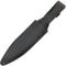 La lame de 3,6 mm d'épaisseur est affûtée des deux côtés (18°/23°) et dotée d'une gorge des deux côtés. Elle est fabriquée en acier inoxydable 440C et possède une dureté de 57-58 HRC. Pour une meilleure découpe, la lame est légèrement bombée des deux côtés. Garde imposante pour plus de sécurité dans la manipulation.