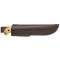 Le manche en rondelles de cuir après un petit traitement à la cire d'abeille lui rendra on étanchéité et sa patine. Pour le fourreau une petite restauration et il serra parfait, le cuir gras est de très bonne qualité. En bref un bon couteau, avec helle on ne se trompe pas sur la qualité.
