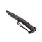 Couteau HERBERTZ, lame noire à trous acier 420 à cran intérieur, manche 12 cm inox rouge et plaquettes ABS noir, avec clip et cordon.