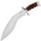 Couteau Hibben Kukri Fighter Knife 5Cr15MoV Blade Wood Handle Leather Sheath à lame fixe - Longueur totale 44.13cm - Longueur de lame 30.16cm - Lame de type kukri plain edge finition satin Lame en acier 5Cr15MoV - Dureté 55 57HRC - Garde et pommeau en acier - Plaquettes du manche en bois - Etui Cuir