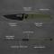 Le manche ergonomique en G10 vert olive assure une prise en main sûre et confortable, même en conditions humides. Le système de verrouillage Axis Lock garantit une ouverture et une fermeture fluides et sécurisées.