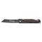 Le manche, conçu en G10 et acier, assure une prise en main confortable et stable. Sa finition bicolore noir et rouge ajoute une touche d'élégance à l'ensemble. Un clip de port pratique permet de garder le couteau à portée de main, tandis que le mousqueton intégré facilite son transport.