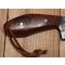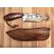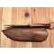 La lame est en acier Xc75 (acier carbone) de 4mm d'épaisseur avec finition brut de forge. Le manche est en bois de fer d'Arizona, le montage est à plate semelle avec rivets. L'étui est en cuir à tannage végétal de belle qualité avec finition antique tan et cire d'abeille, coutures sellier au fil de lin.