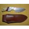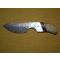 Couteau de collection signé Hilmar, exemplaire unique. La lame a été conçue et dessinée par Doug Metzger et forgé à Seiki au Japon en acier San Mai; cet acier est issu des techniques de forge traditionnelles et ancestrales japonnaises et possède un tranchant très dur en acier VG10 avec des flancs en superbe damas. Outre l'aspect esthétique, cette lame possède des qualités de tenue du fil exceptionnelles tout en n'étant pas cassante (dureté 57-58 RC). La lame comporte 70 couches.