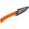 Le manche est équipé de plaquettes en G10 orange "Peel Ply", un matériau composite léger et résistant qui offre une prise en main exceptionnelle, même dans des conditions humides. La couleur orange vif assure une haute visibilité, un atout précieux sur le terrain.