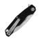 Lame en acier inox D2 finition "stonewashed" avec "flipper", mécanisme "KVT ball bearing" et cran intérieur, d'une longueur de 8,5 cm.
