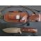 Étui multipositions en cuir véritable, pierre à aiguiser et allume-feu inclus.