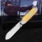 Le manche se distingue par ses plaquettes en Paper Micarta de couleur "Antique Ivory", offrant un aspect ivoire vintage élégant tout en bénéficiant de la durabilité et de la résistance du micarta. La structure est d'une robustesse exemplaire grâce à ses platines et mitres intégrales (Integral Bolsters & Liners) en acier inoxydable satiné. Le souci du détail est poussé jusqu'à l'écusson "Banner" incrusté et les broches en maillechort. Avec un "walk and talk" ferme et précis doté d'un demi-arrêt (Half Stop), ce couteau est autant un outil fiable pour le quotidien qu'une pièce de collection.