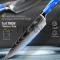 Le motif ondulé damas et le manche en résine bleue rendent le couteau brillant et élégant