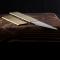 Couteau Japonais Yoshiharu Penanto Kiridashi Lame Miroir Acier Inoxydable Manche Laiton Étui Laiton