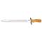 Le couteau Joker Chamois, avec sa lame en acier Molybdène Vanadium, offre une durabilité exceptionnelle. Son tranchant lisse et son profil Drop Point assurent une coupe précise. Le manche en bois d'olivier et l'étui en cuir ajoutent confort et sécurité. Longueur totale de 455 mm, lame de 330 mm, épaisseur de 5 mm.
