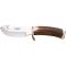 Avec une lame de 110 mm en acier Molybdène Vanadium, ce couteau assure une excellente résistance à la corrosion et une robustesse irréprochable. Le profil de la lame Skinner est idéal pour un dépouillement précis, tandis que son tranchant lisse garantit une coupe nette. La longueur totale du couteau est de 255 mm, offrant une prise en main confortable.